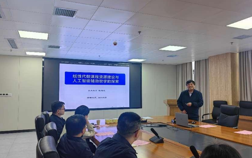 为加快推进一流学科课程建设工作,深切提高教师教育教学水平,10月28日,肉漫画 于数学楼A418顺利举办第19期教学高端论坛大会,本次论坛的主题为线性代数课程的资源建设与人工智能辅助教学的探索。论坛特邀东南大学陈建龙教授为肉漫画 老师分享线性代数建课经验,35名数学院教师代表参与论坛讨论,刘红良副院长、张娟副院长出席。论坛由杨银院长主持。