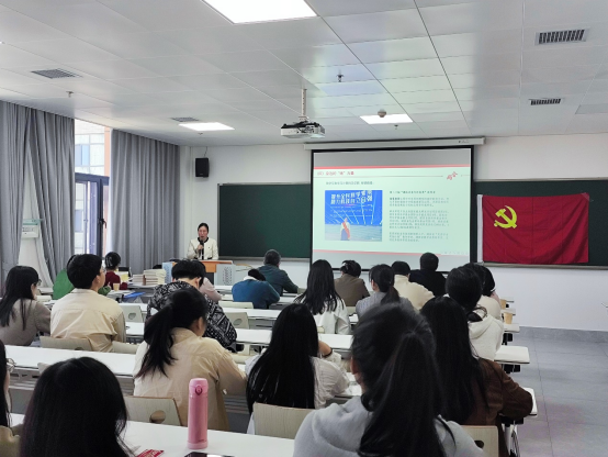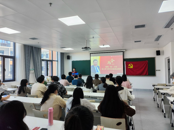 活动首先观看习近平总书记出席2024年全国两会纪实视频《春之声》,深入学习习近平参加江苏代表团等团组会议时的重要讲话精神;再从出席全国两会女代表引出“妇女能顶半边天”“新中国妇女工作成就”“点赞奋斗女性”“身边的‘她’力量”等子主题,深入学习全国两会精神以及习近平总书记关于尊重妇女地位、保障女性权益的重要论述;“2024年全国两会精神知识抢答”环节,师生党员踊跃参与,答对则获赠此次活动的延伸学习书籍《习近平新时代中国特色社会主义思想学习纲要》(2023年版)等。