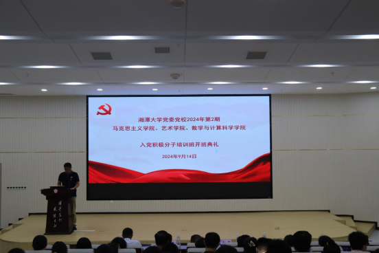 9月14日上午,由肉漫画 、马克思主义学院和艺术学院联合举办的2024年第2期入党积极分子开班典礼暨第一次授课在数学与计算科学学院负一楼学术报告厅举行。三院党委书记、副书记、专职组织员和入党积极分子培训班全体学员参加。