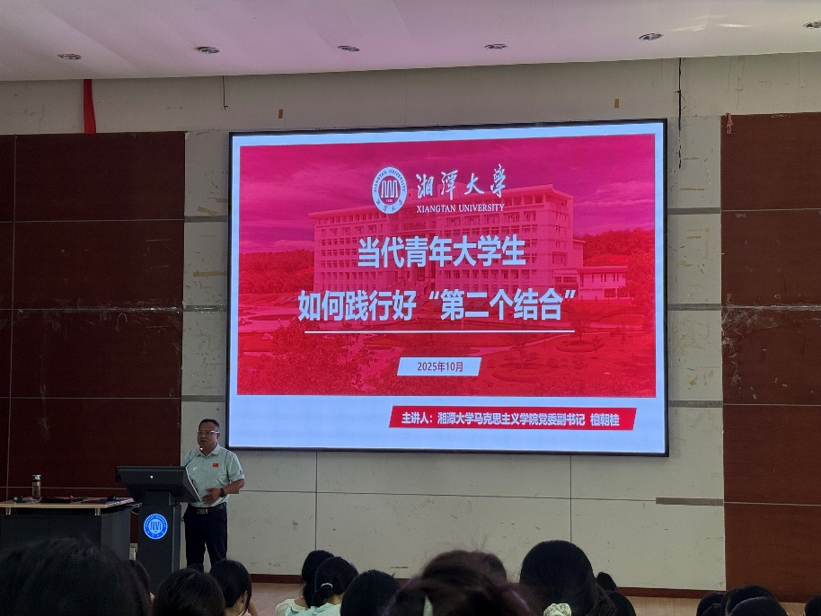 紧接着,马克思主义学院檀朝桂老师主讲了题为“当代青年大学生如何践行好‘第二个结合’”的内容。檀老师首先为我们清晰梳理了“第二个结合”,即马克思主义基本原理同中华优秀传统文化相结合的重大意义与时代价值,指出这不仅是开辟和发展中国特色社会主义的必由之路,也是我们筑牢文化根基、实现精神上的独立自主的关键所在。随后,他将理论焦点精准地投向我们青年一代,着重探讨了“如何践行”这一核心命题。