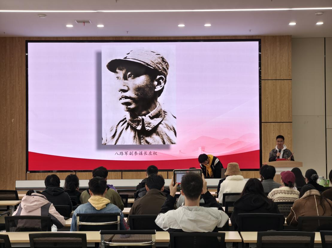 学员们配合精心制作的 PPT,将宏大的抗战叙事与微观的个体感悟相融合。从关键战役的决策时刻到英雄群体的悲壮瞬间,一组组翔实的数据、一个个鲜活的故事,在学员们声情并茂的讲述中变得具体可感。现场气氛热烈,既有理性数据的支撑,又有感性力量的迸发,充分展现了新时代预备党员扎实的理论素养与昂扬的精神风貌。