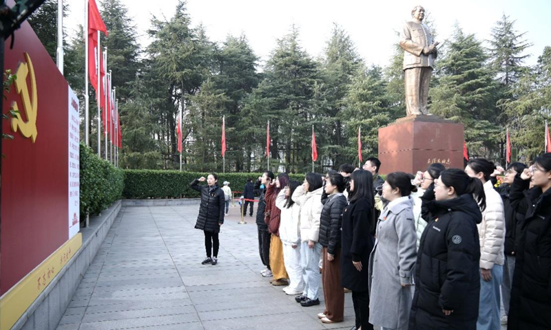 活动首站,全体党员庄严肃立于毛泽东同志铜像广场,怀着无比崇敬的心情向伟人敬献花篮,深深三鞠躬,深切缅怀毛泽东同志的丰功伟绩和崇高精神。重温入党誓词环节,全体党员面向鲜红党旗,高举右拳,铿锵有力的誓言表达了青年党员传承红色基因、永葆政治本色的坚定决心。