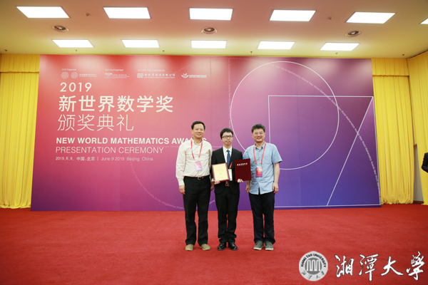 新世界数学奖(New World Mathematical Award,简称NWMA)是面向全球杰出华人数学学生的奖项,由华人杰出数学家、菲尔兹奖和沃尔夫数学奖获得者丘成桐教授与新世界发展有限公司董事总经理郑家纯博士于2007年共同创立,每三年举办一次颁奖典礼,旨在激励全世界范围内杰出华人数学学子追求数学真理,对年轻数学人才取得的成就予以认可。本届评选包括2017—2019年3个年度,本科组共评出2项金奖、3项银奖和1项优胜奖,其中在2018年度评出的3个奖项中,湘大学子获得1项银奖和1项优胜奖。