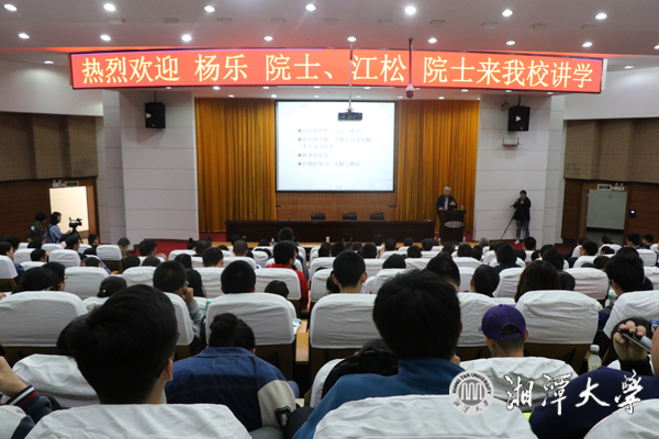 当天下午,中国科学院院士杨乐、江松来到我校,在逸夫楼第一报告厅分别作了题为“学好数学,走上研究之路”、“偏微分方程:作用分析与数值求解”的两场科普讲座。校党委书记黄云清主持报告会。