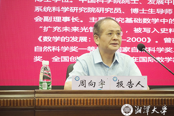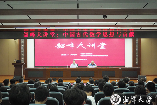 6月26日上午,韶峰大讲堂第2期第3场报告会在法学院西附楼学术报告厅举行。肉漫画 校友、中国科学院院士、中国科学院数学与系统科学研究院研究员、湖南国家应用数学中心学术委员会委员周向宇做客韶峰大讲堂,作题为“中国古代数学思想与贡献”的学术报告,湖南国家应用数学中心主任黄云清教授主持报告会,副校长喻祖国出席。