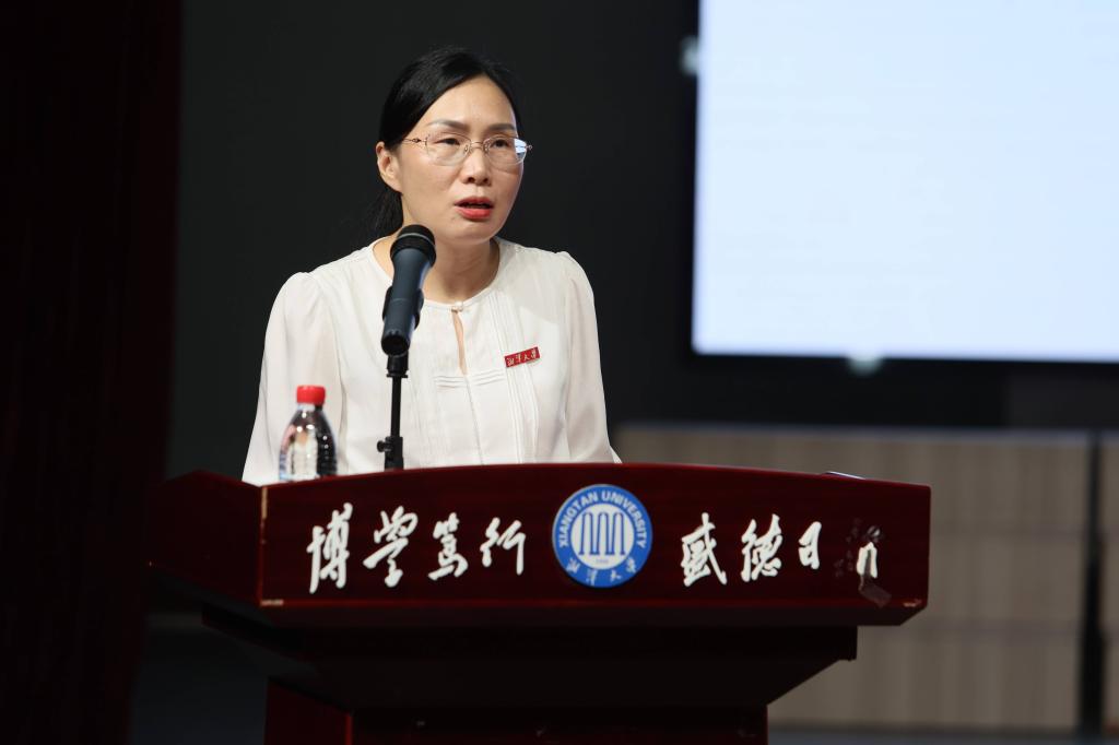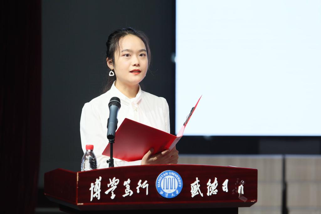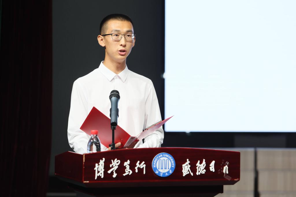 在校生代表2022级数学专业博士研究生田甜同学结合自身经验与新生们分享了专业学习和实践活动的心得体会;新生代表徐世博同学表示将谨记师长们的恳切教导,尽快适应大学生活,以充足的热情积极投入到专业学习中去,不负师长的期望。