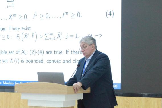 俄罗斯科学院院士、莫斯科物理技术学院Alexander Shananin教授阐述了生产网络中的输入替代的均衡模型相关科研工作。