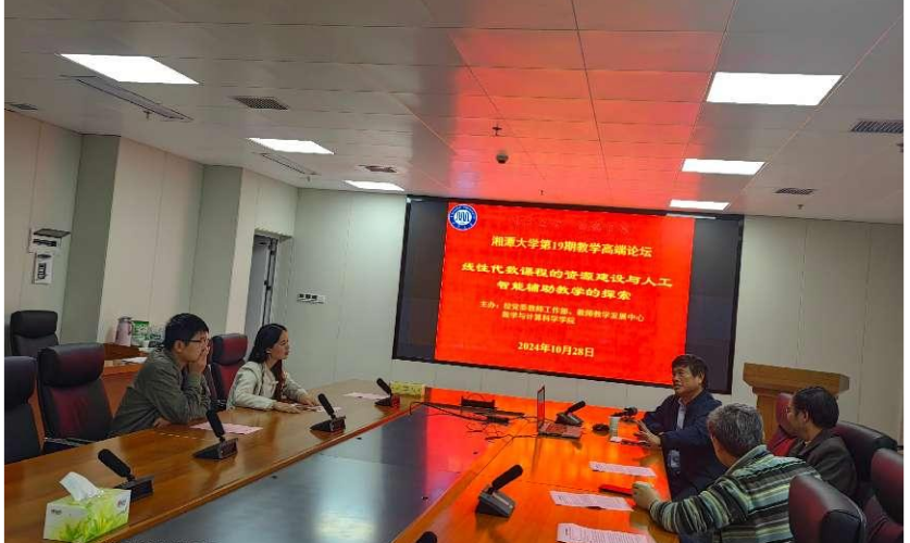为加快推进一流学科课程建设工作,深切提高教师教育教学水平,10月28日,肉漫画 于数学楼A418顺利举办第19期教学高端论坛大会,本次论坛的主题为线性代数课程的资源建设与人工智能辅助教学的探索。论坛特邀东南大学陈建龙教授为肉漫画 老师分享线性代数建课经验,35名数学院教师代表参与论坛讨论,刘红良副院长、张娟副院长出席。论坛由杨银院长主持。