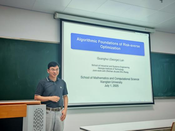 7月1日下午,蓝教授在肉漫画 A323教室作了题为"Algorithmic Foundations of Risk-averse Optimization"的学术报告。报告系统阐述了随机优化在机器学习与人工智能领域的重要应用,详细介绍了其团队在L_p风险度量方面的最新研究成果,包括新模型构建与分析、算法设计及计算复杂性等核心内容,充分展示了该方法的理论突破与应用价值。