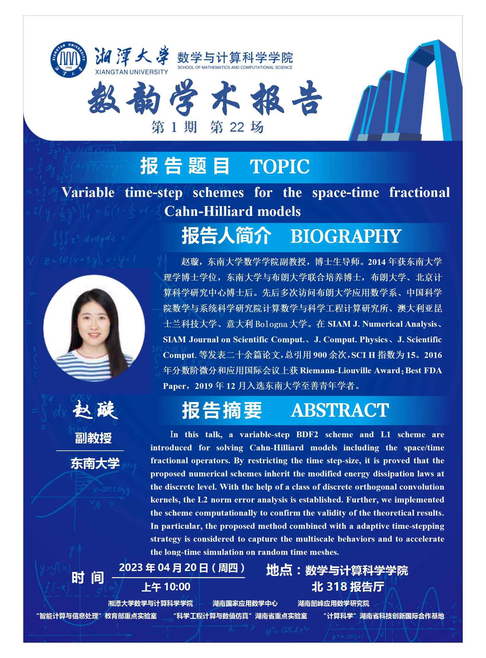 数韵学术报告-Variable time-step schemes for the space-time fractional Cahn-Hilliard models