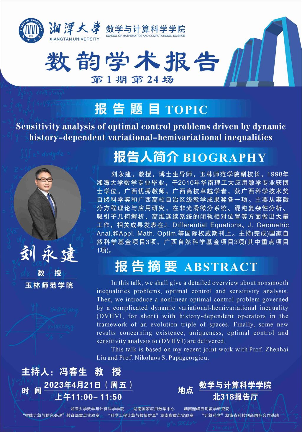 数韵学术报告-Sensitivity analysis of optimal control problems driven by dynamic history-dependent variational- hemivariational inequalities