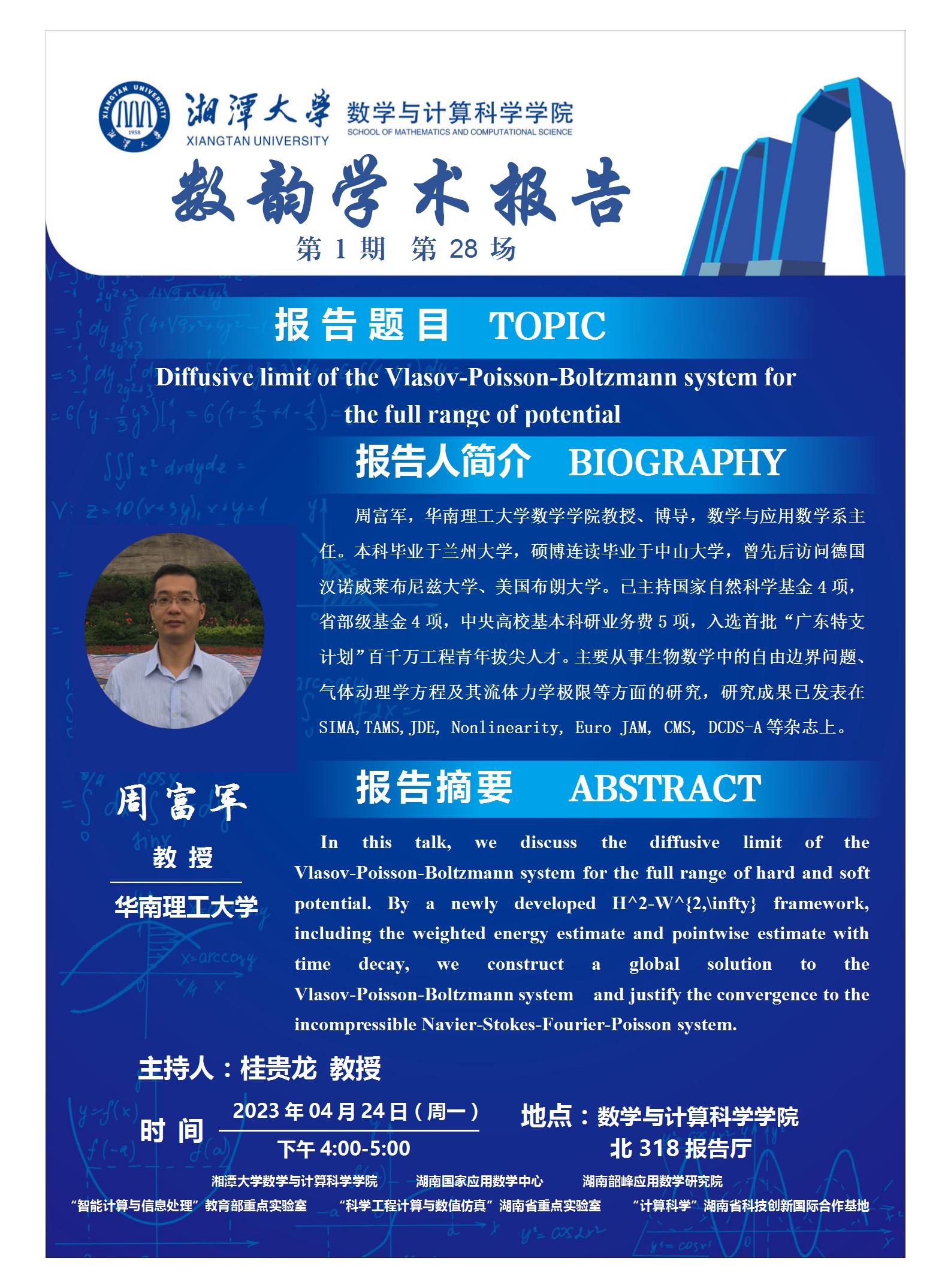 数韵学术报告- Diffusive limit of the Vlasov-Poisson-Boltzmann system for the full range of potential