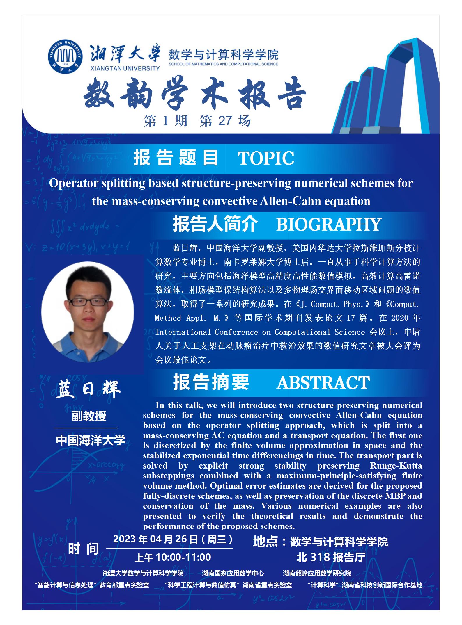数韵学术报告-Operator splitting based structure-preserving numerical schemes for the mass-conserving convective Allen-Cahn equation