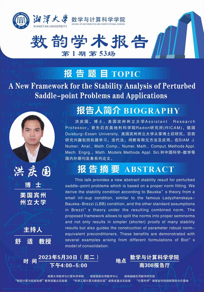 数韵学术报告- A New Framework for the Stability Analysis of Perturbed Saddle-point Problems and Applications