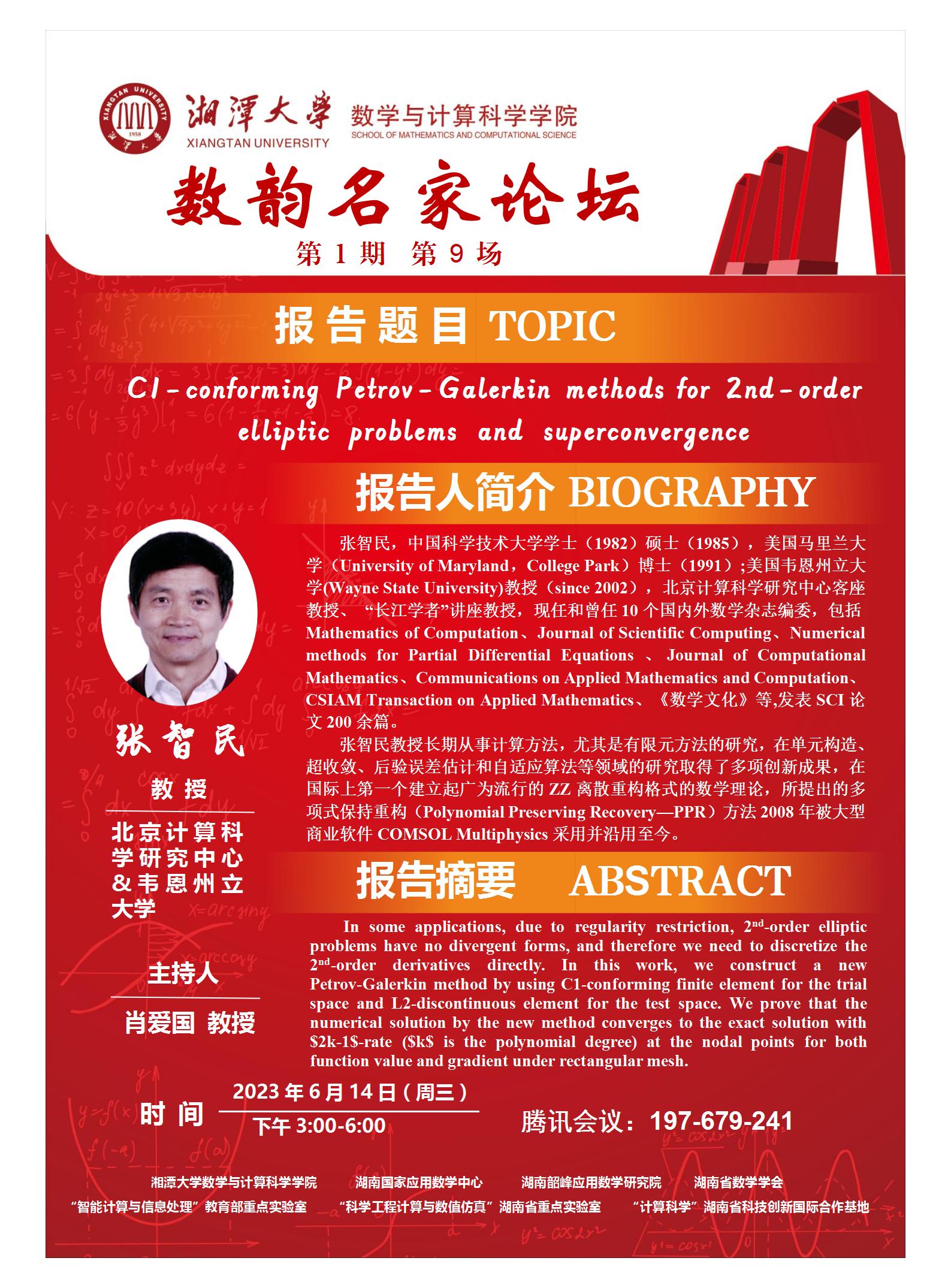 数韵名家论坛-C1-conforming Petrov-Galerkin methods for 2nd-order elliptic problems and superconvergence