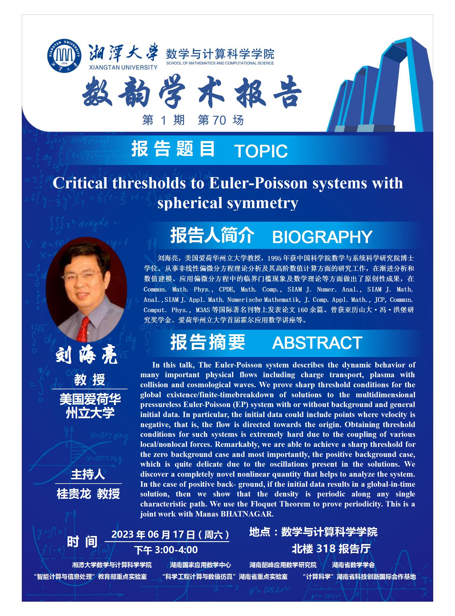 数韵学术报告-Critical thresholds to Euler-Poisson systems with spherical symmetry
