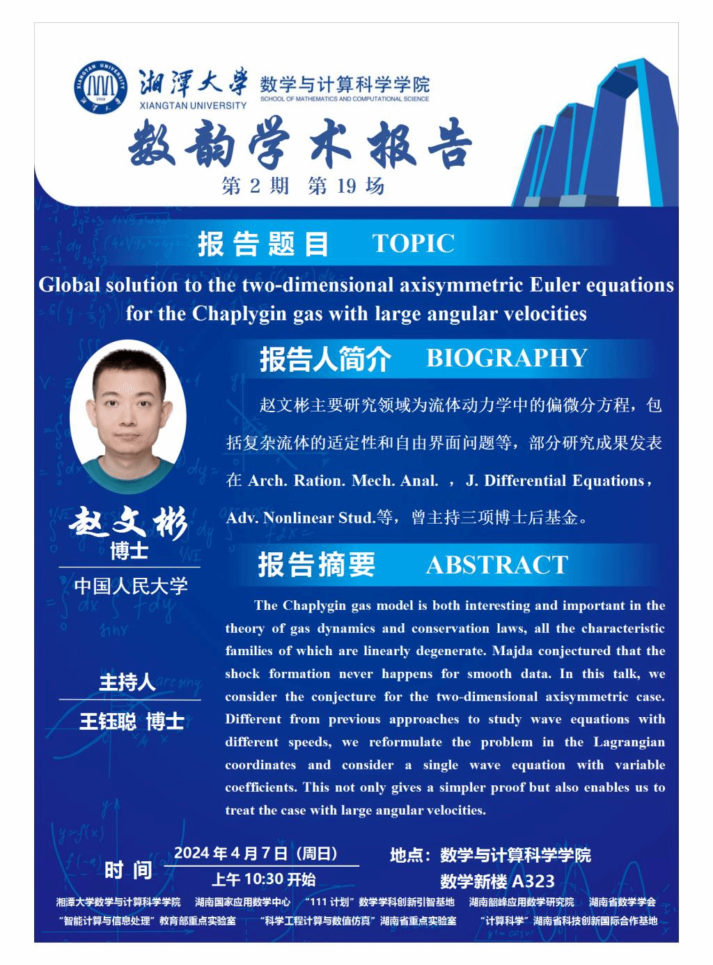 数韵学术报告-Global solution to the two-dimensional axisymmetric Euler equations for the Chaplygin gas with large angular velocities