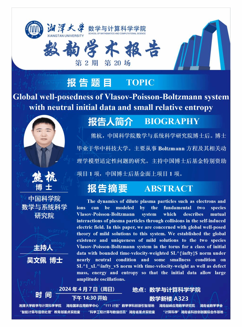 数韵学术报告-Global well-posedness of Vlasov-Poisson-Boltzmann system with neutral initial data and small relative entropy