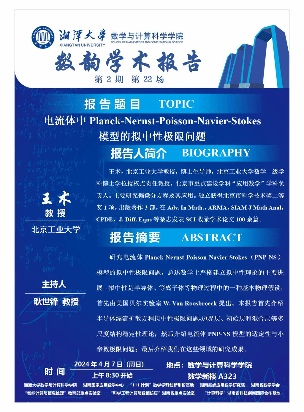 数韵学术报告-电流体中Planck-Nernst-Poisson-Navier-Stokes模型的拟中性极限问题
