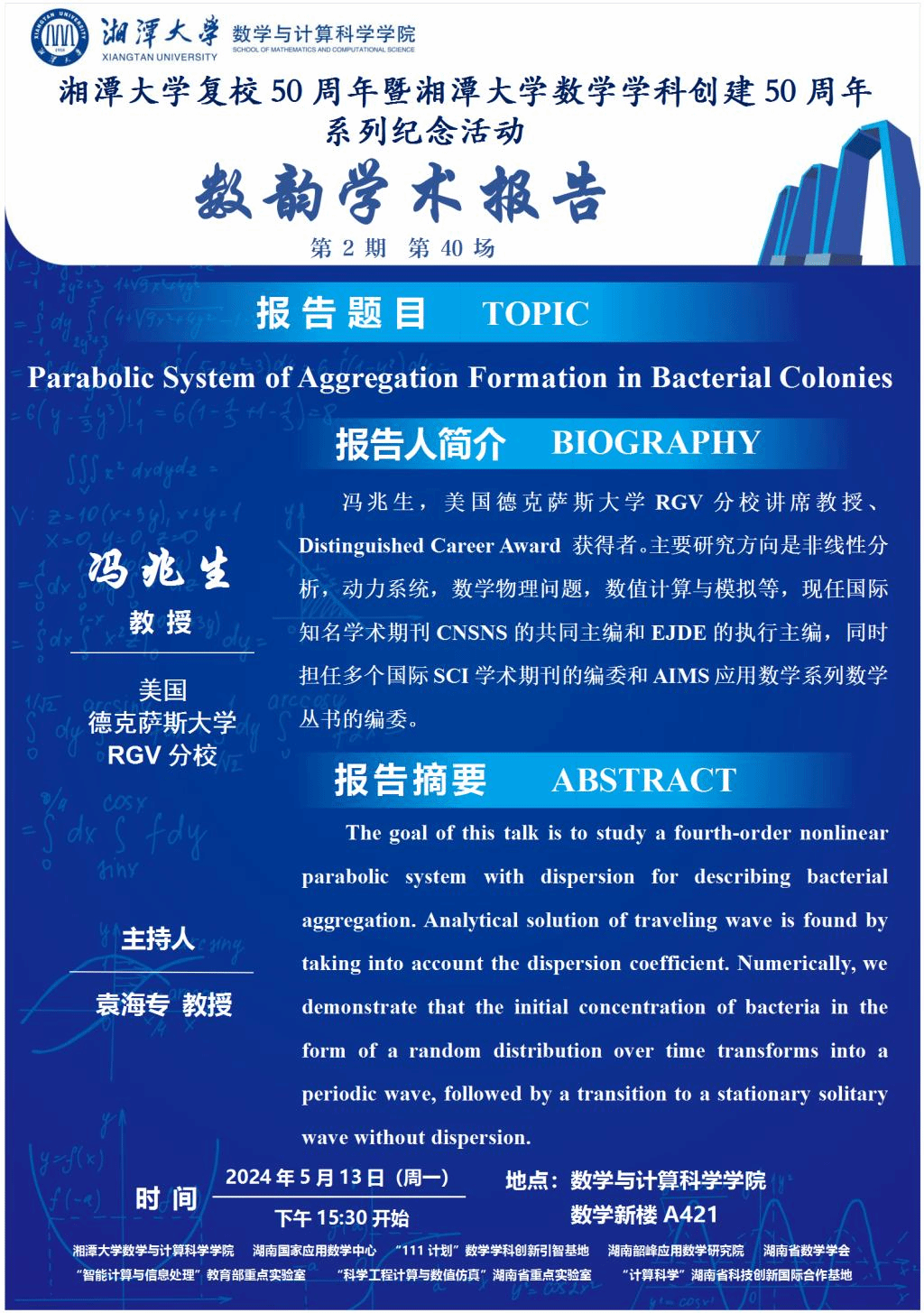 数韵学术报告-Parabolic System of Aggregation Formation in Bacterial Colonies
