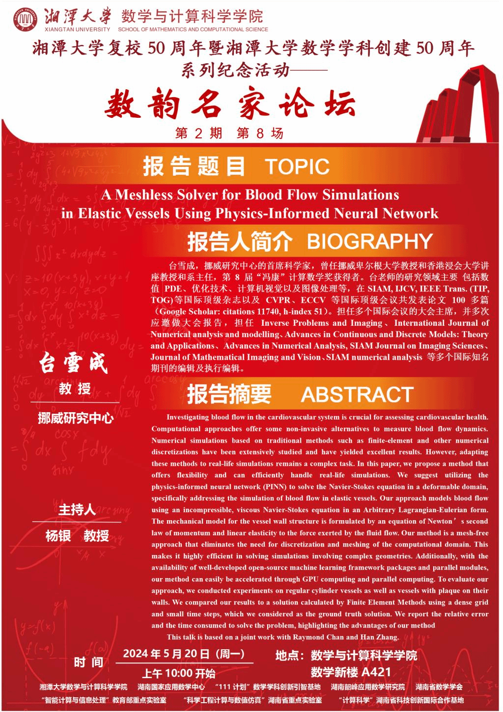 数韵名家论坛-A Meshless Solver for Blood Flow Simulations in Elastic Vessels Using Physics-Informed Neural Network