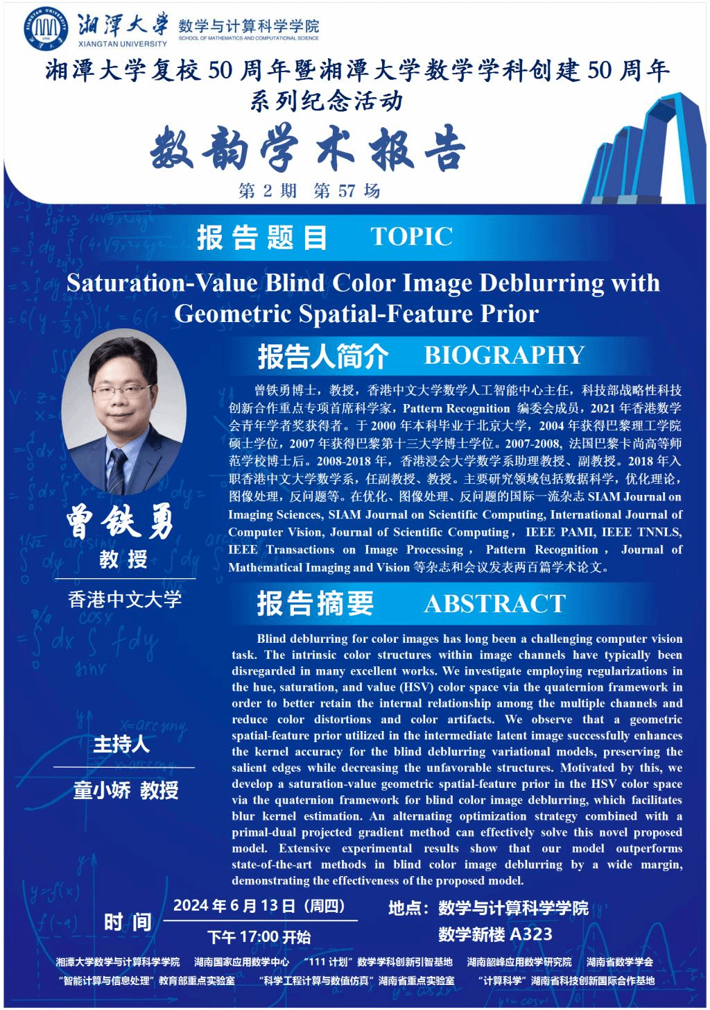 数韵学术报告- Saturation-Value Blind Color Image Deblurring with Geometric Spatial-Feature Prior