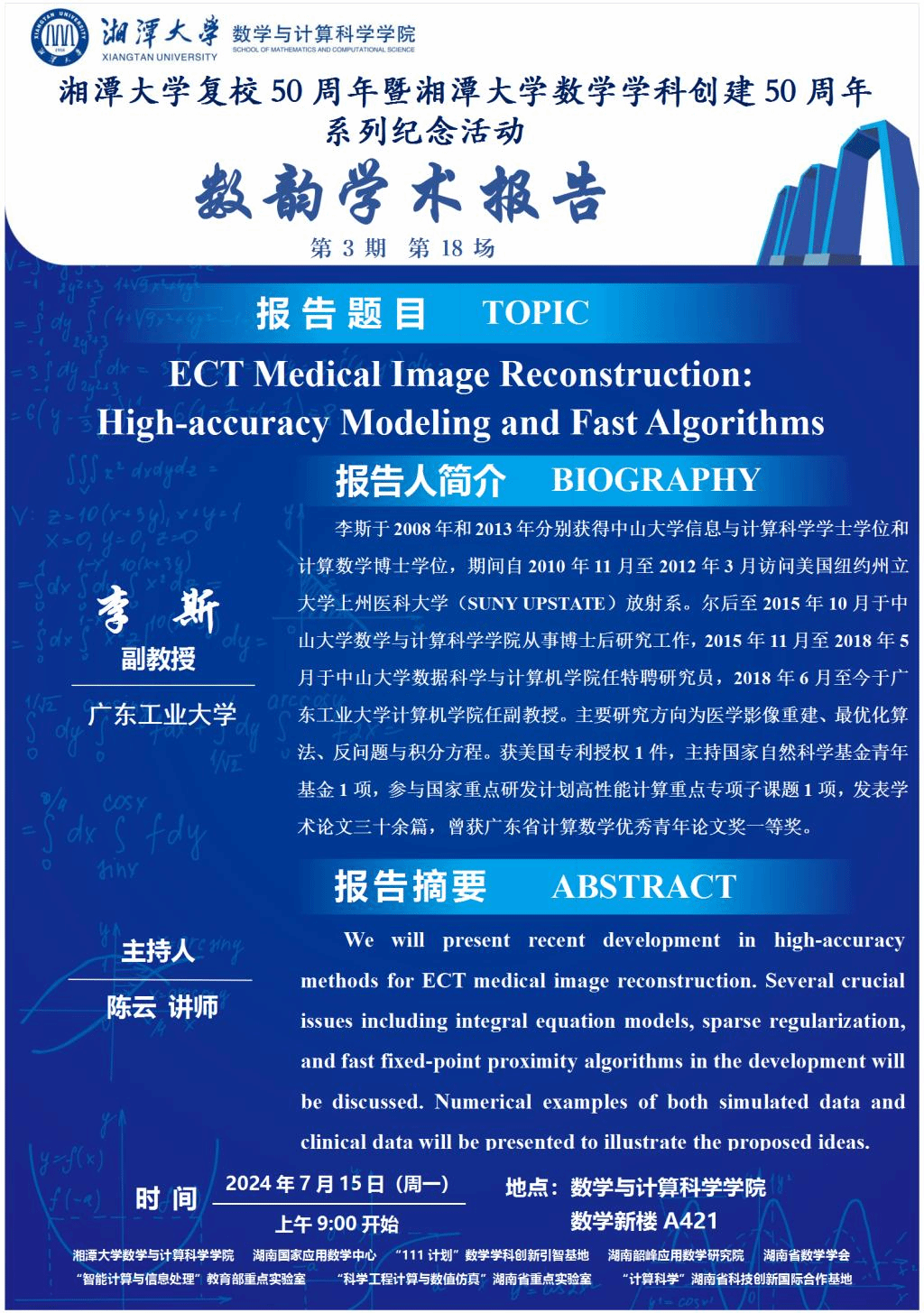 数韵学术报告-ECT Medical Image Reconstruction:High-accuracy Modeling and Fast Algorithms