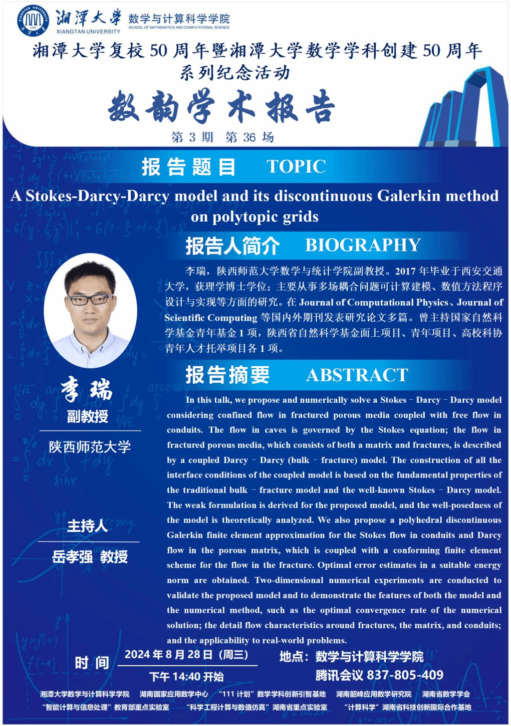 数韵学术报告-A Stokes-Darcy-Darcy model and its discontinuous Galerkin method on polytopic grids