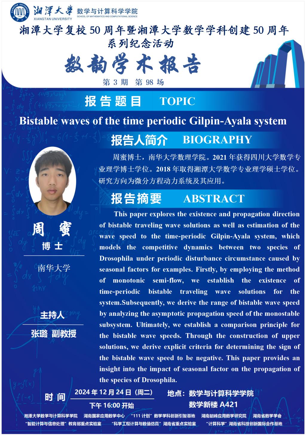 数韵学术报告-Bistable waves of the time periodic Gilpin-Ayala system