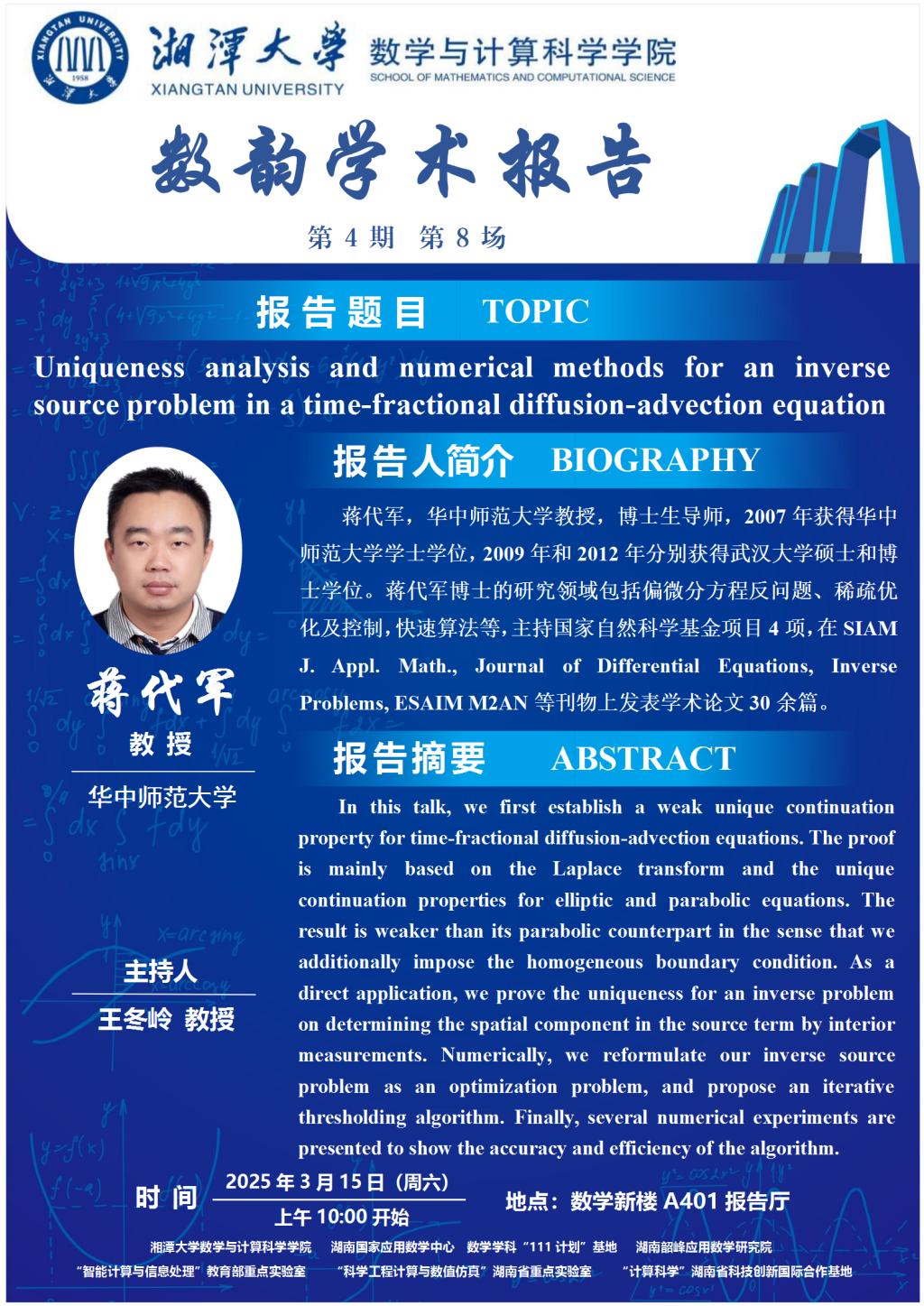数韵学术报告-Uniqueness analysis and numerical methods for an inverse source problem in a time-fractional diffusion-advection equation