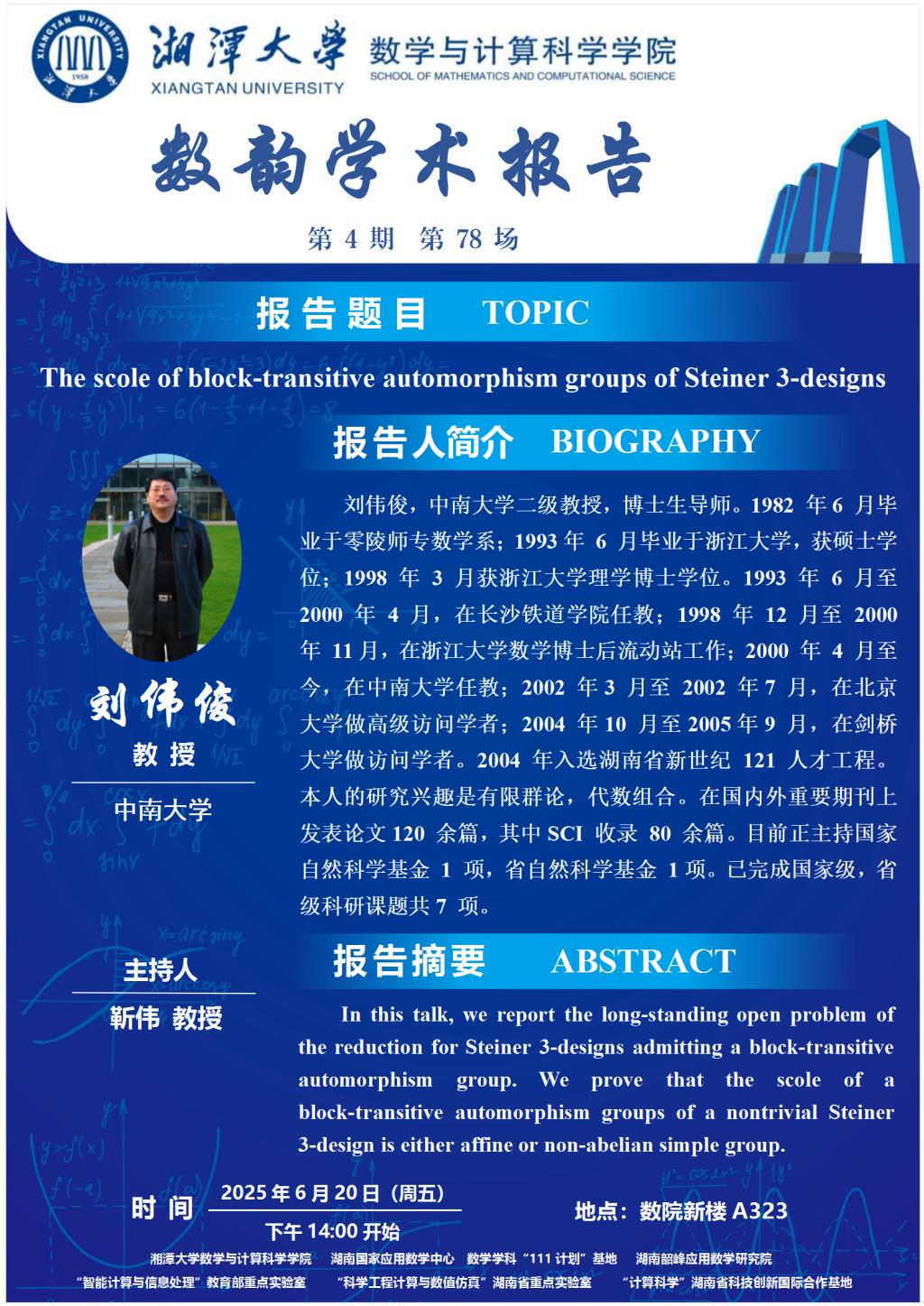 数韵学术报告-The scole of block-transitive automorphism groups of Steiner 3-designs