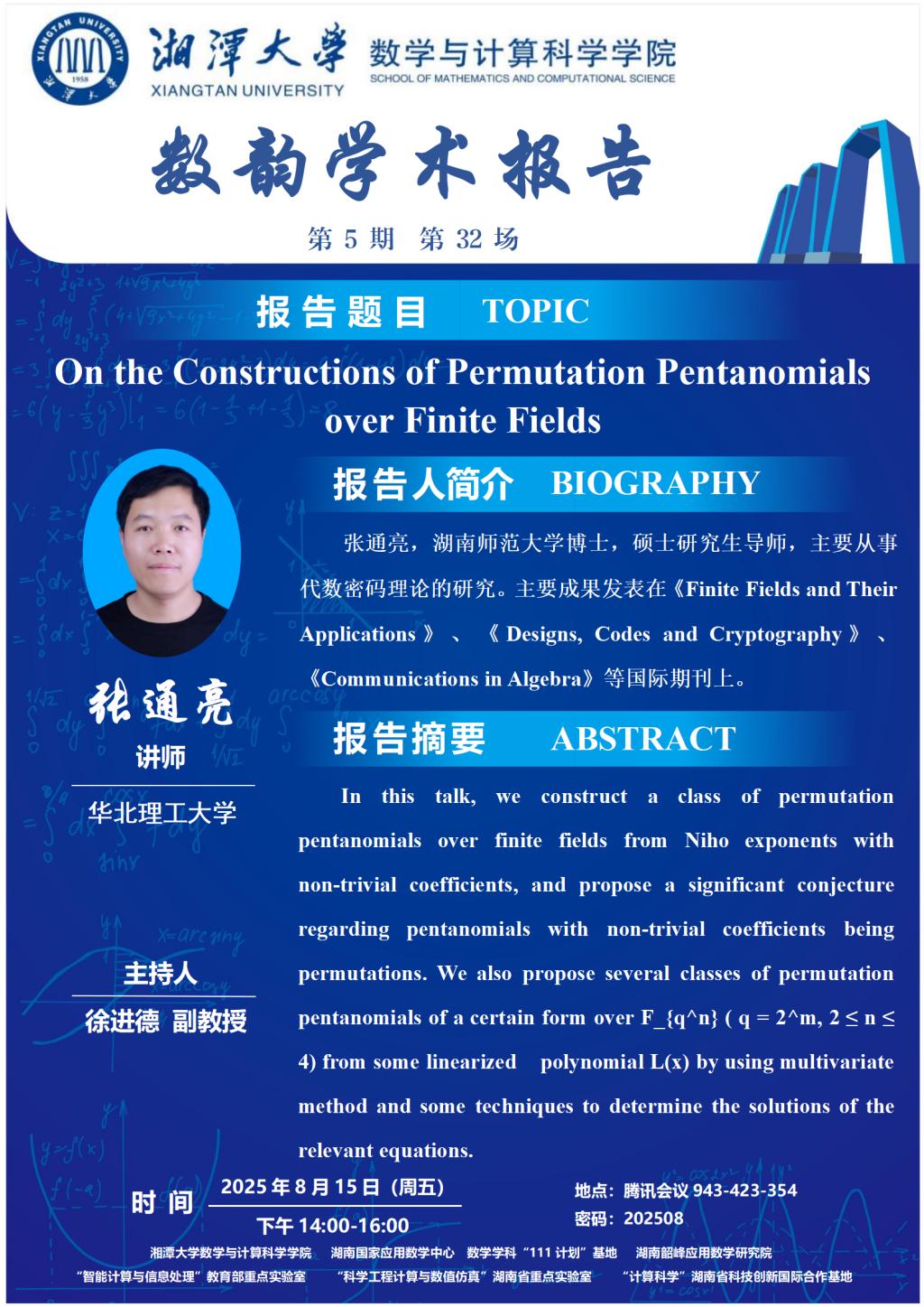数韵学术报告-On the Constructions of Permutation Pentanomials over Finite Fields