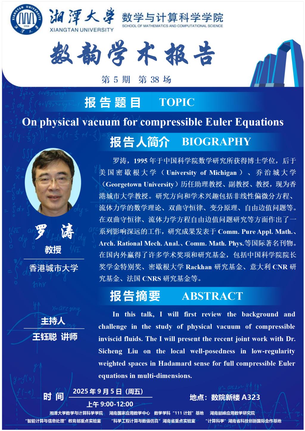 数韵学术报告-On physical vacuum for compressible Euler Equations