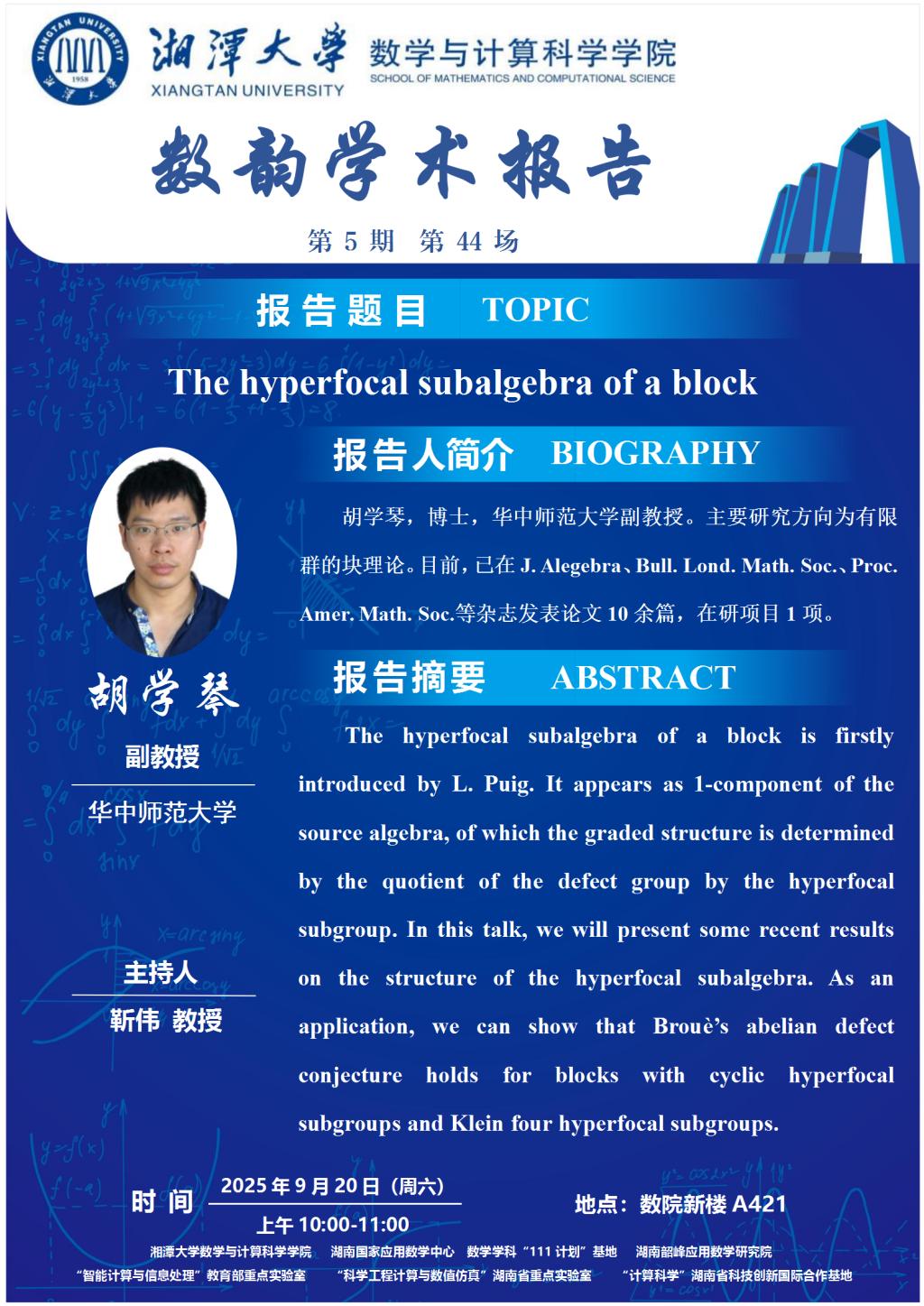 数韵学术报告-The hyperfocal subalgebra of a block