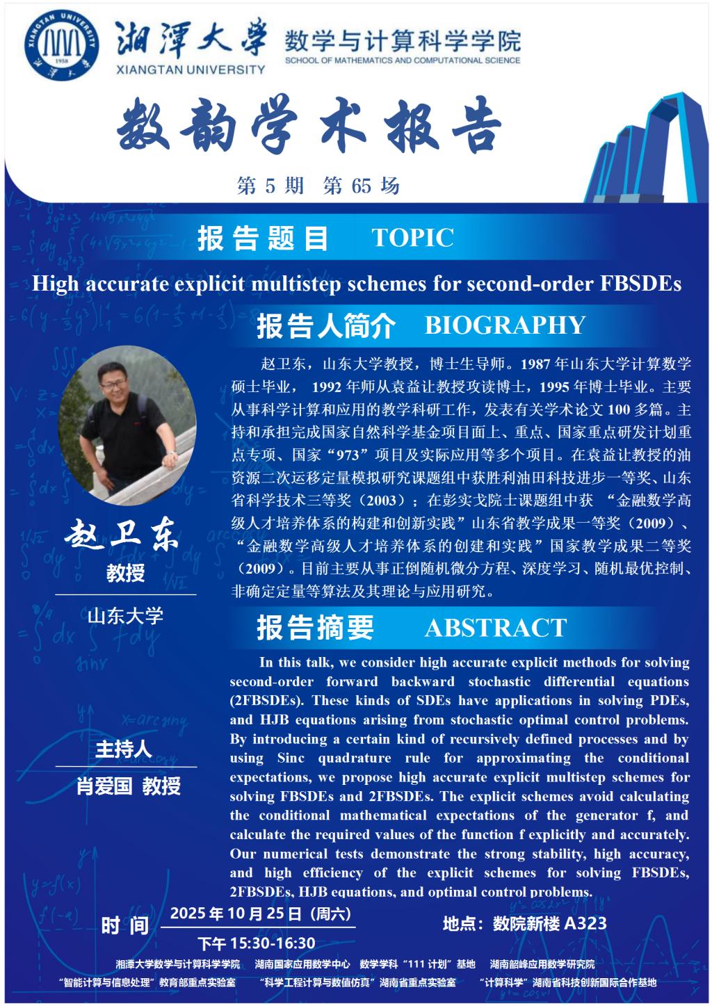 数韵学术报告-High accurate explicit multistep schemes for second-order FBSDEs