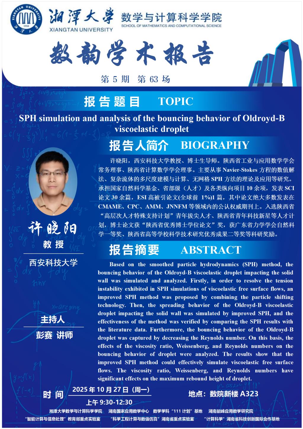 数韵学术报告-SPH simulation and analysis of the bouncing behavior of Oldroyd-B viscoelastic droplet