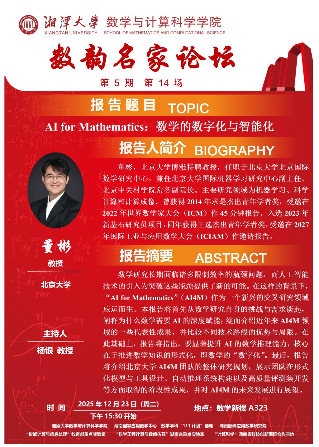 数韵名家论坛-董彬-AI for Mathematics:数学的数字化与智能化