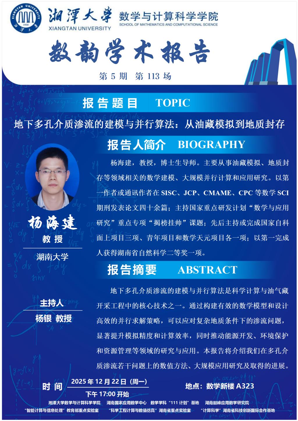 数韵学术报告-杨海建-地下多孔介质渗流的建模与并行算法:从油藏模拟到地质封存