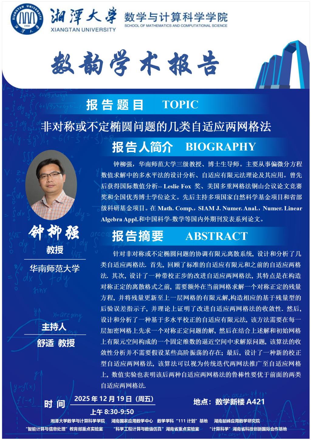 数韵学术报告-钟柳强-非对称或不定椭圆问题的几类自适应两网格法