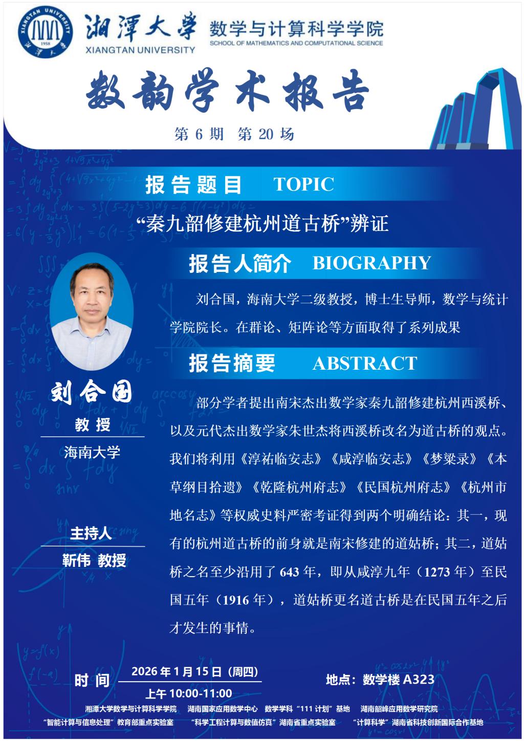 数韵学术报告-刘合国-“秦九韶修建杭州道古桥”辨证